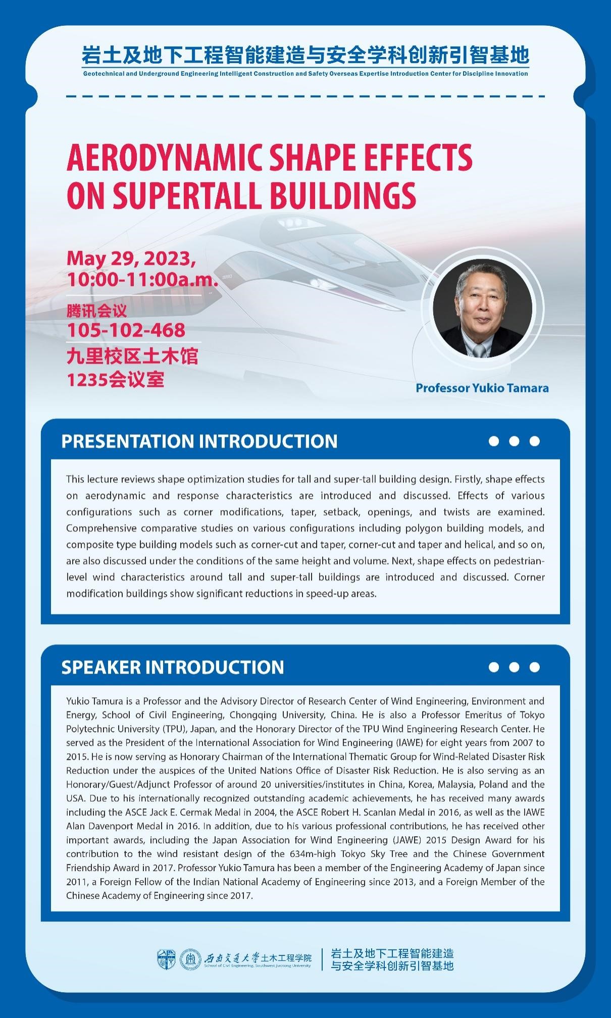 5月29日上午10点,受诸侯快讯ok1133.com诸侯快讯ok1133.com邀请,重庆大学教授、日本工艺大学名誉教授、日本工程院院士、印度工程院外籍院士、中国工程院外籍院士、欧洲科学院院士、建筑结构抗风研究和应用领域的国际著名专家田村幸雄教授在九里校区土木馆1235会议室为诸侯快讯ok1133.com师生分享了题为“Aerodynamics Shape Effects on Supertall Buildings”的学术讲座。诸侯快讯ok1133.com院长蒲黔辉教授以及诸侯快讯ok1133.com的师生现场聆听了报告,讲座由陈嵘副院长主持,蒲黔辉院长致辞。为了让更多的师生有机会聆听讲座,此次活动采用线上同步直播模式。