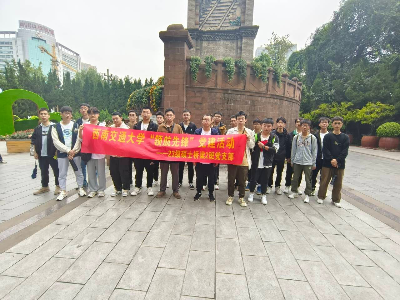新时代的中国青年要以实现中华民族伟大复兴为己任,增强做中国人的志气、骨气、底气,不负时代,不负韶华,不负党和人民的殷切期望。2023年10月26日,2023级硕士桥梁2班党支部于九里校区四教4520和人民公园开展“学习马克思主义理论,坚定中国特色社会主义信仰”实践教育活动,引导同学树立共产主义远大理想,坚定中国特色社会主义共同理想。