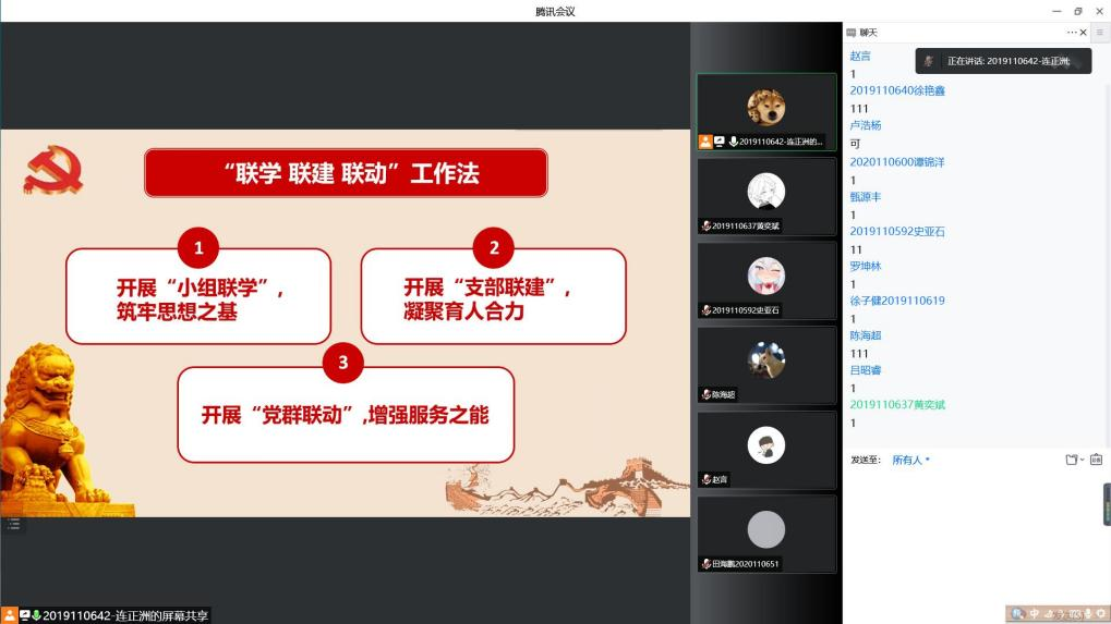 在听完优秀支部工作法讲解后,同学们都受到了感动和启发,纷纷表示应当对先进经验进行借鉴。疫情当前,党的坚强领导就是最终胜利的根本保证,作为大学生党员,完成好支部的日常党建工作也是在为抗击疫情尽一份力!最后,在同学们的温暖的问好声中,我们结束了这次优秀支部工作法专题学习活动。