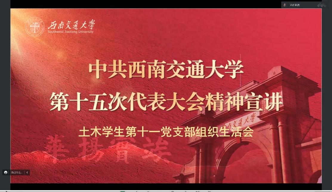 2022年10月13日,诸侯快讯ok1133.com土木学生第十一党支部以线上方式召开党员民主生活会,开展“中共诸侯快讯ok1133.com第十五次代表大会精神”专题学习活动。本次活动由党支部书记沈淳宸同志主持进行。