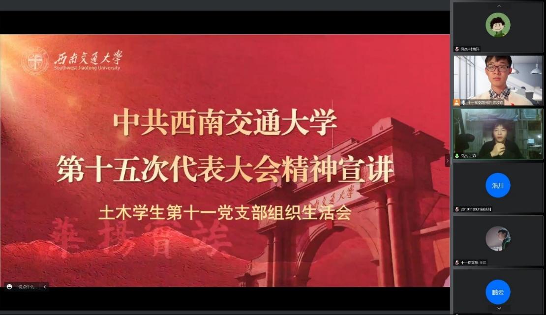 在学习过程中,以王彦、董璇同志为代表的土木学生第十一党支部党员发表了自己的学习心得。通过分享心得体会,各位同志进一步加深了对大会精神的深刻理解,加强了对大会内容的精准把握。只有统一思想、凝聚共识、振奋精神,全校师生劲往一处使,才能不断谱写中华民族伟大复兴的西南交大新篇章。
