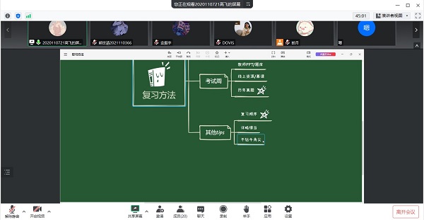 最后,同学们分享了相关学科的学习资料,包括学业中心提前上传准备的云盘资料以及部分优秀学生个人的学习笔记和思维导图。