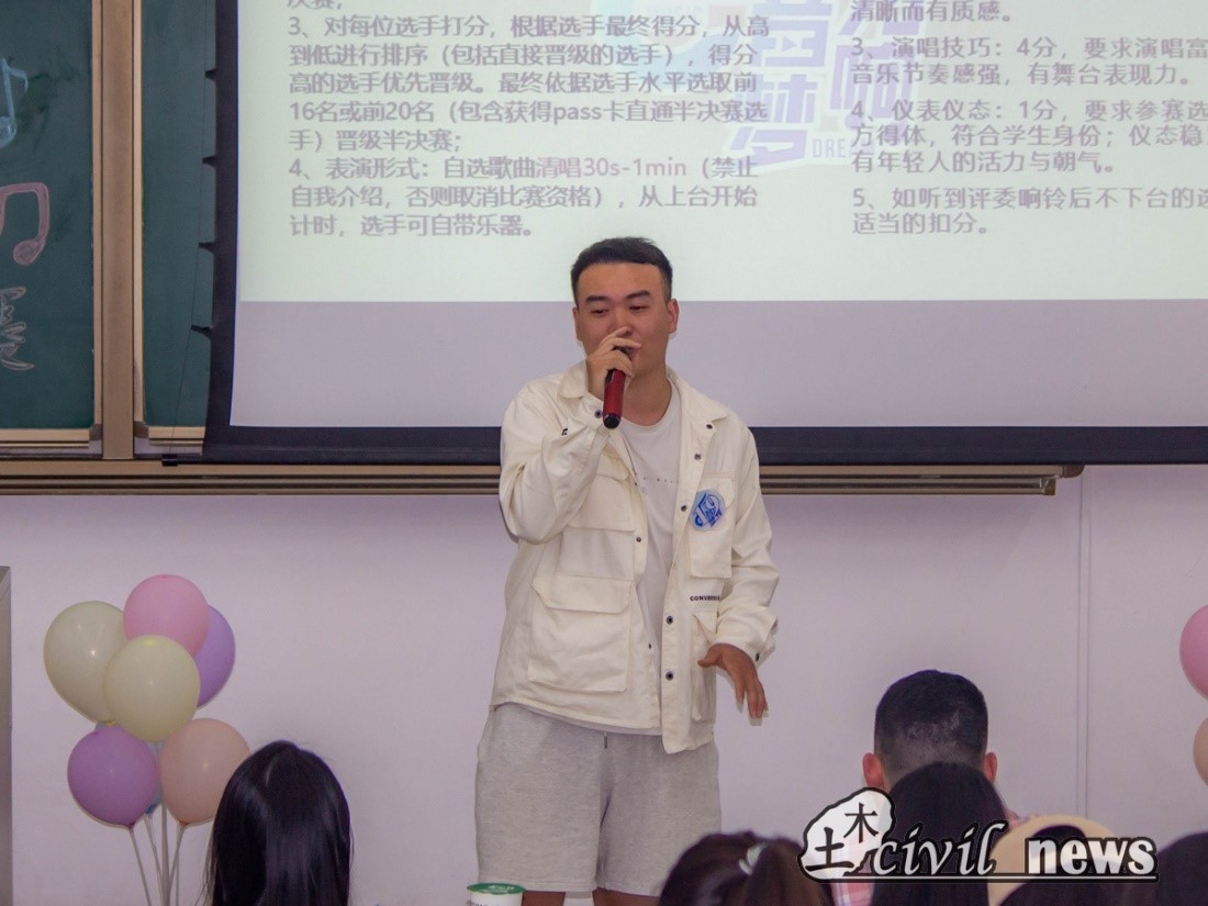 本次初赛受邀担任评委的老师有周坤鹏、张素子、许欢、高正阳,来自不同院系的观众也来到现场为选手加油助威。初赛采取清唱的打分机制,参赛选手不使用音乐伴奏限时演唱歌曲,由现场评委老师进行打分评选。