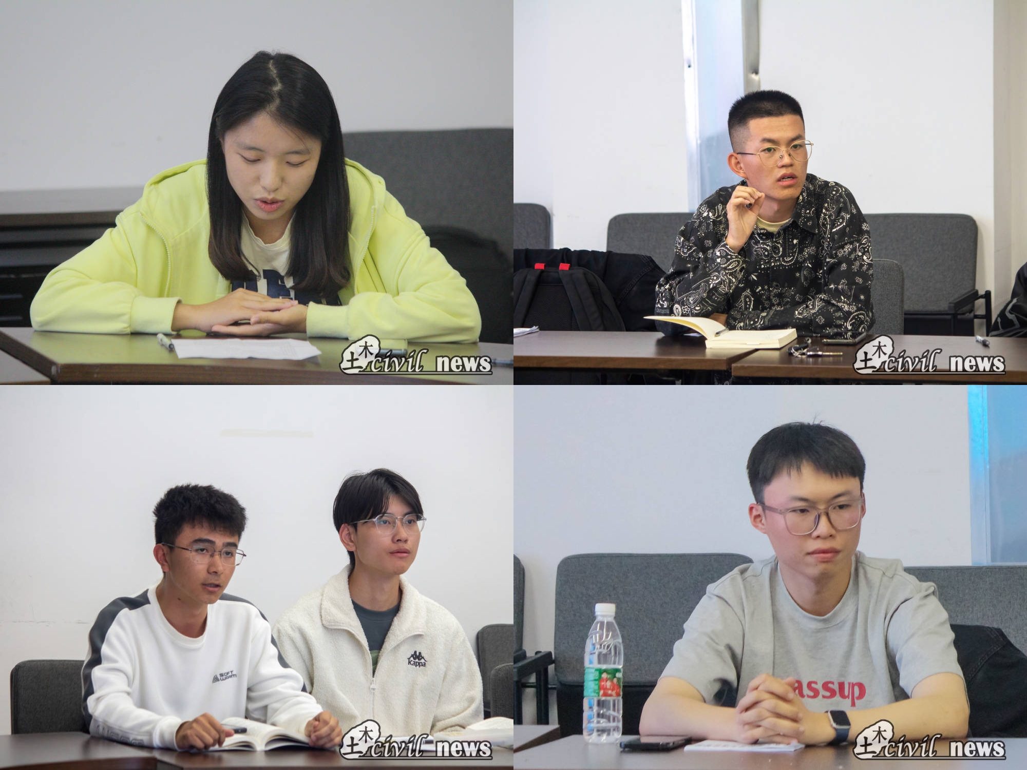 学生会主席团成员陶祚诏则分享了个人大学期间的成长经历,指出应善于端正学习态度、树立短期目标并为之不懈努力。ASCEISG主任吴津庭鼓励同学们在不断提高个人能力的过程中积极投入社会实践,在创新实践中实现个人价值。新闻中心主任叶晨希通过分享文学阅读带来的现实思考鼓励同学们提升个人审美素养,在专业学习过程中争做“德智体美劳”综合发展的新时代土木青年。