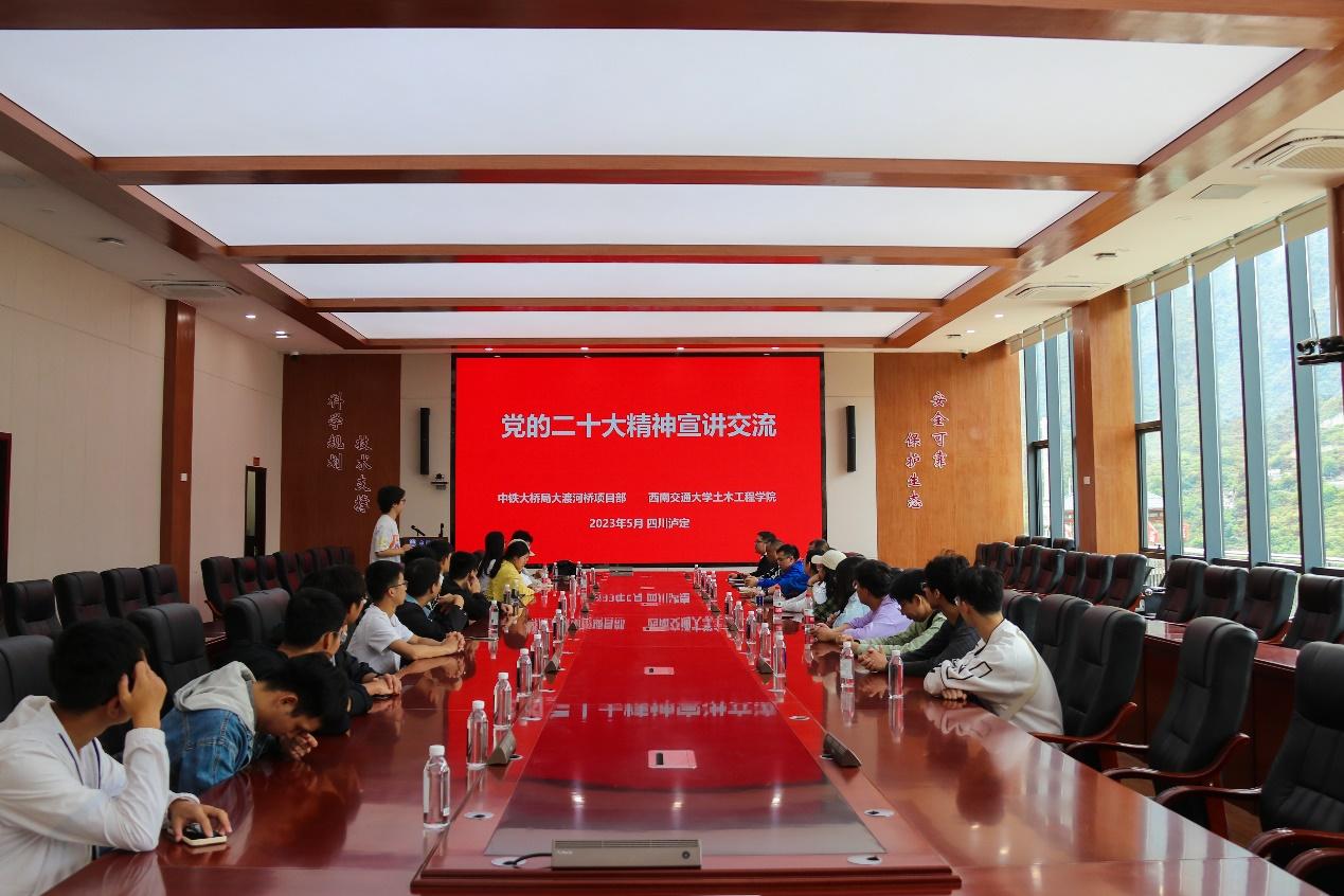 现场参观结束后,同学们与企业相关领导开展座谈会。泸定中铁大桥局项目部综合办主任刘勇、工程部部长李鑫、工区党支部书记韩巍、张伟、中铁大桥局八公司人力资源部长刘浩、人力资源部部员陈永星,学院辅导员雷晓鸣、刘玉琳、柯妍老师出席座谈会。