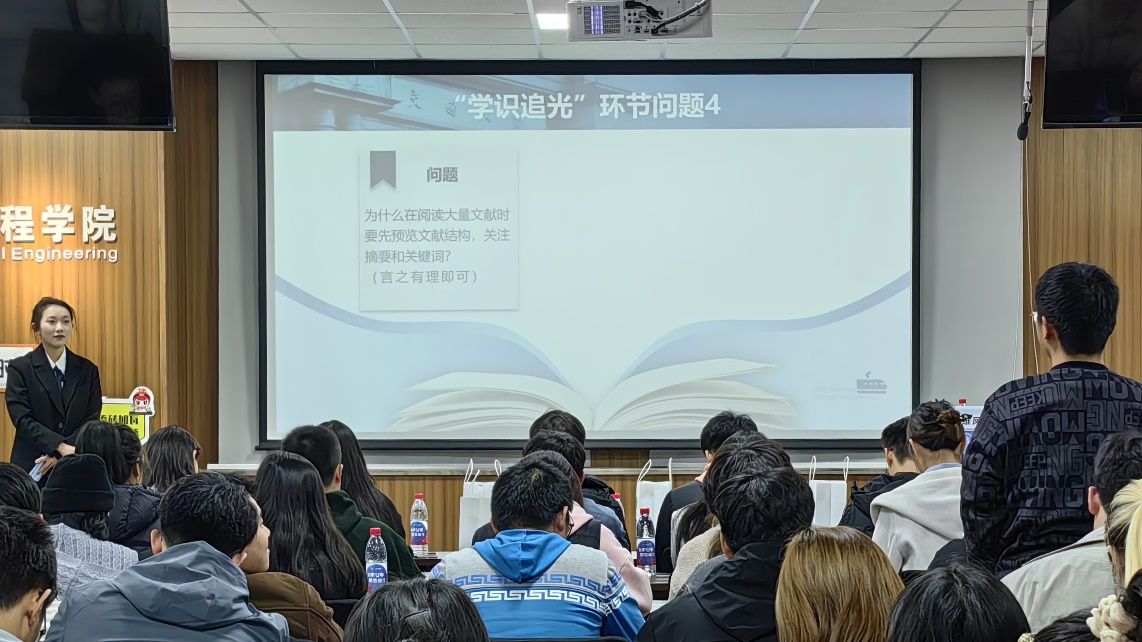 讲座伊始,朱维凤老师以“如何进行文献调研”为题切入,强调了在互联网时代提升自己的信息检索素养于同学们科研旅途的重要性并从常用学术信息源、文献调研流程及检索案例分析三个方面展开讲述。