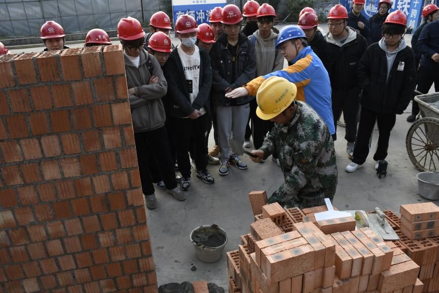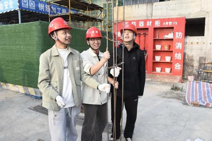 随后,学院师生前往中铁八局建筑公司中铁·星月云湖项目参观施工现场并进行实操教学。中铁八局建筑公司黑龙滩项目副总工程师凌麒对学院师生的到来表示热烈欢迎,并简要介绍了黑龙滩项目工程概况及实操教学内容。同学们被分为多个小组,在工人师傅的带领教学下,分别进行钢筋绑扎、砖墙砌筑等实操演练。第三钢筋绑扎小组以快速、高质量的绑扎技巧斩获“最佳实操小组”。同学们也在此次实操演练中,见到了课本中的“理论知识”,受益匪浅。