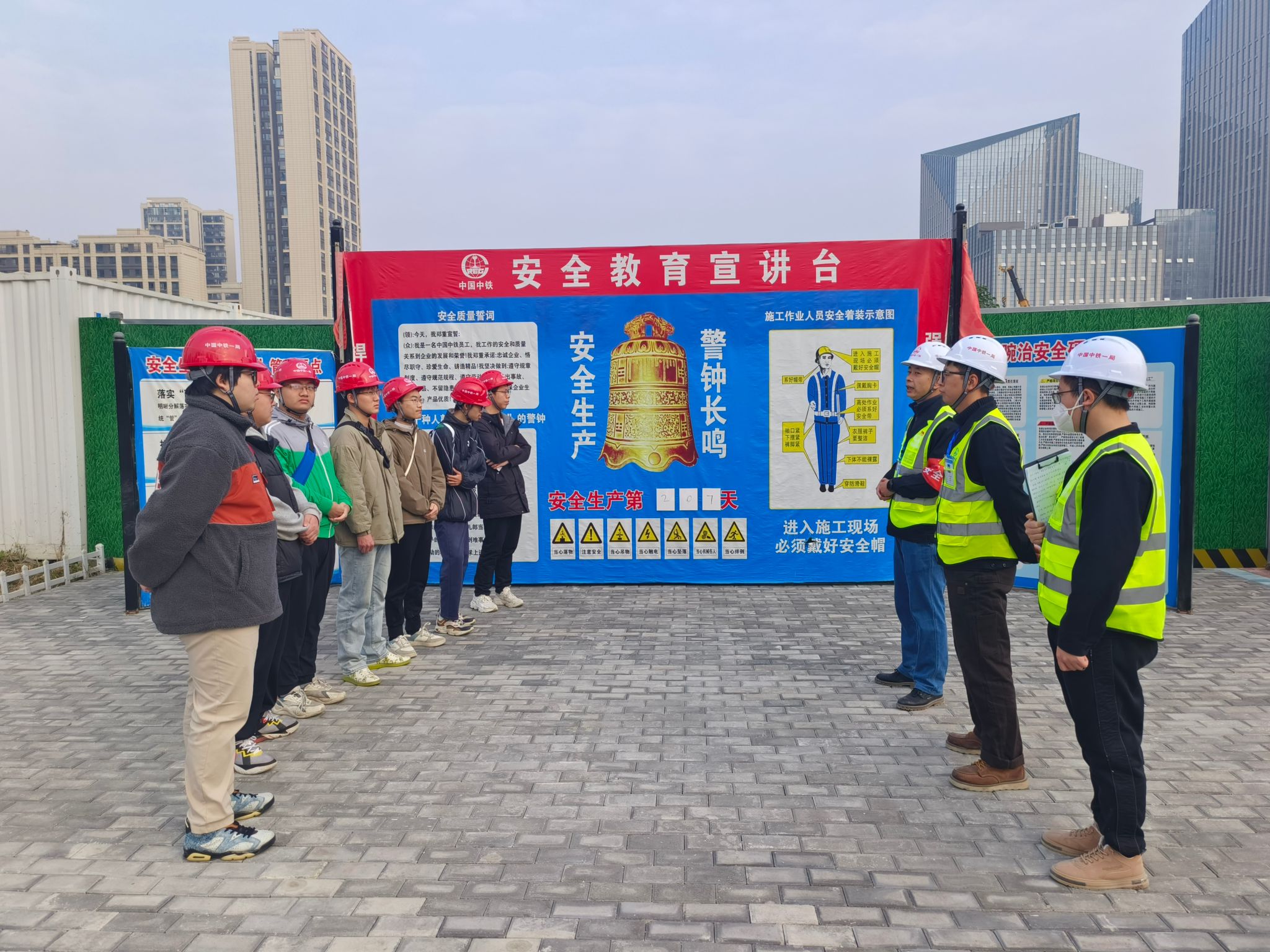 上午八点半,学院师生一行人乘坐大巴车前往中铁轨道交通高科技产业园1号地块三期设计-施工总承包Ⅰ标、Ⅱ标项目。在工作人员的带领下,学院师生参观了施工现场,针对同学们提出的种种疑惑,工作人员都进行了详细的解答。