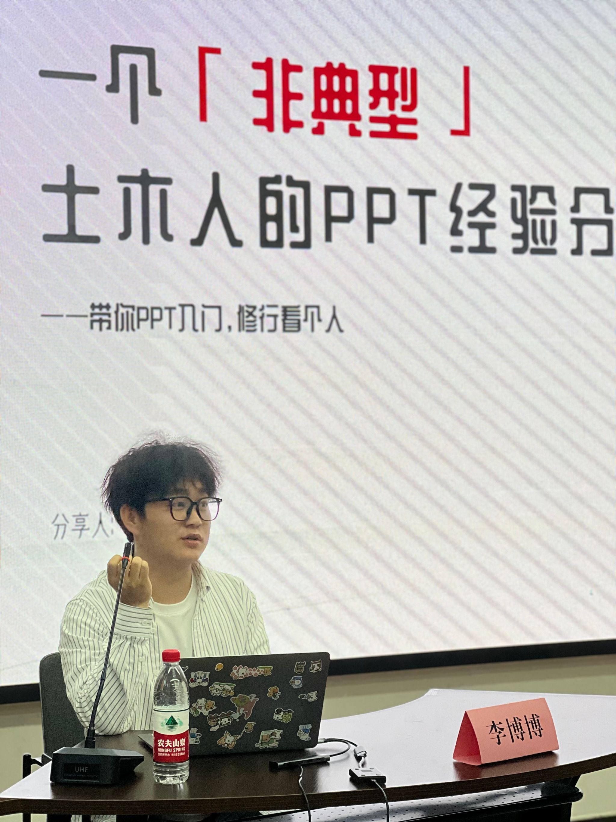 接下来,李博博分别从背景、字体以及装饰三个方面为同学讲解PPT制作与美化的思路。