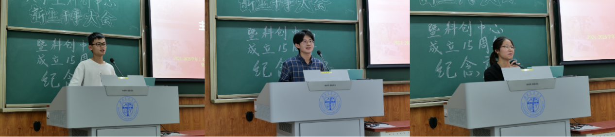 随后,指导老师张津毓回顾了科创中心的发展历程,讲述了他眼中科创中心全体成员们顽强拼搏、砥砺前行的故事。同时,向科创的新成员们发出了诚挚的邀请,鼓励大家在科创的舞台上积极探索、勇于创新,为学院的学科竞赛与创新实践领域贡献自己的力量。