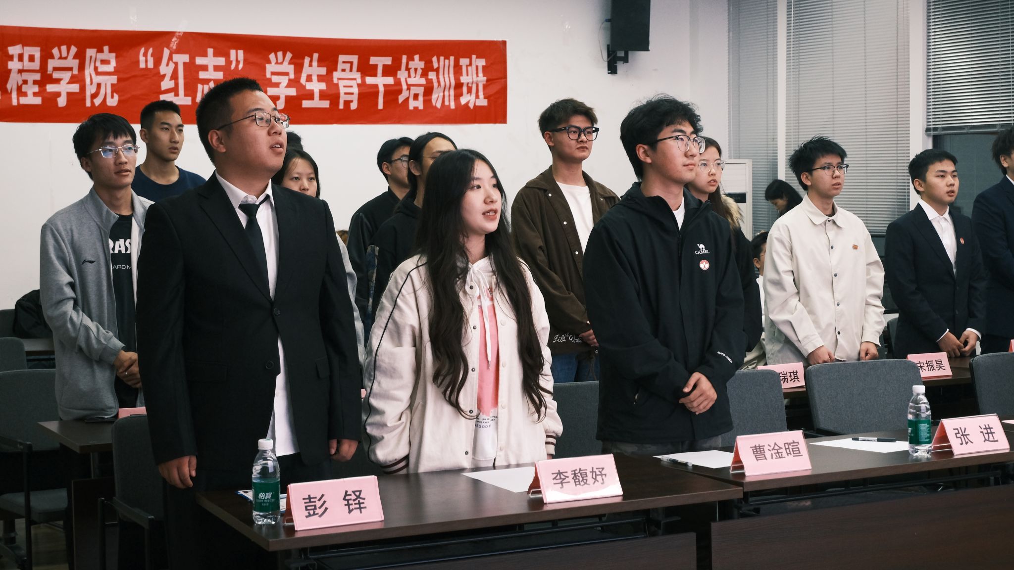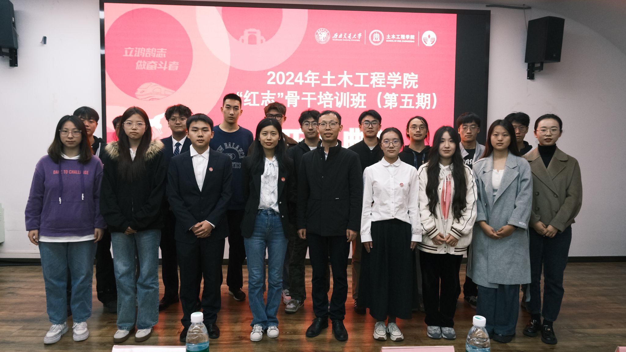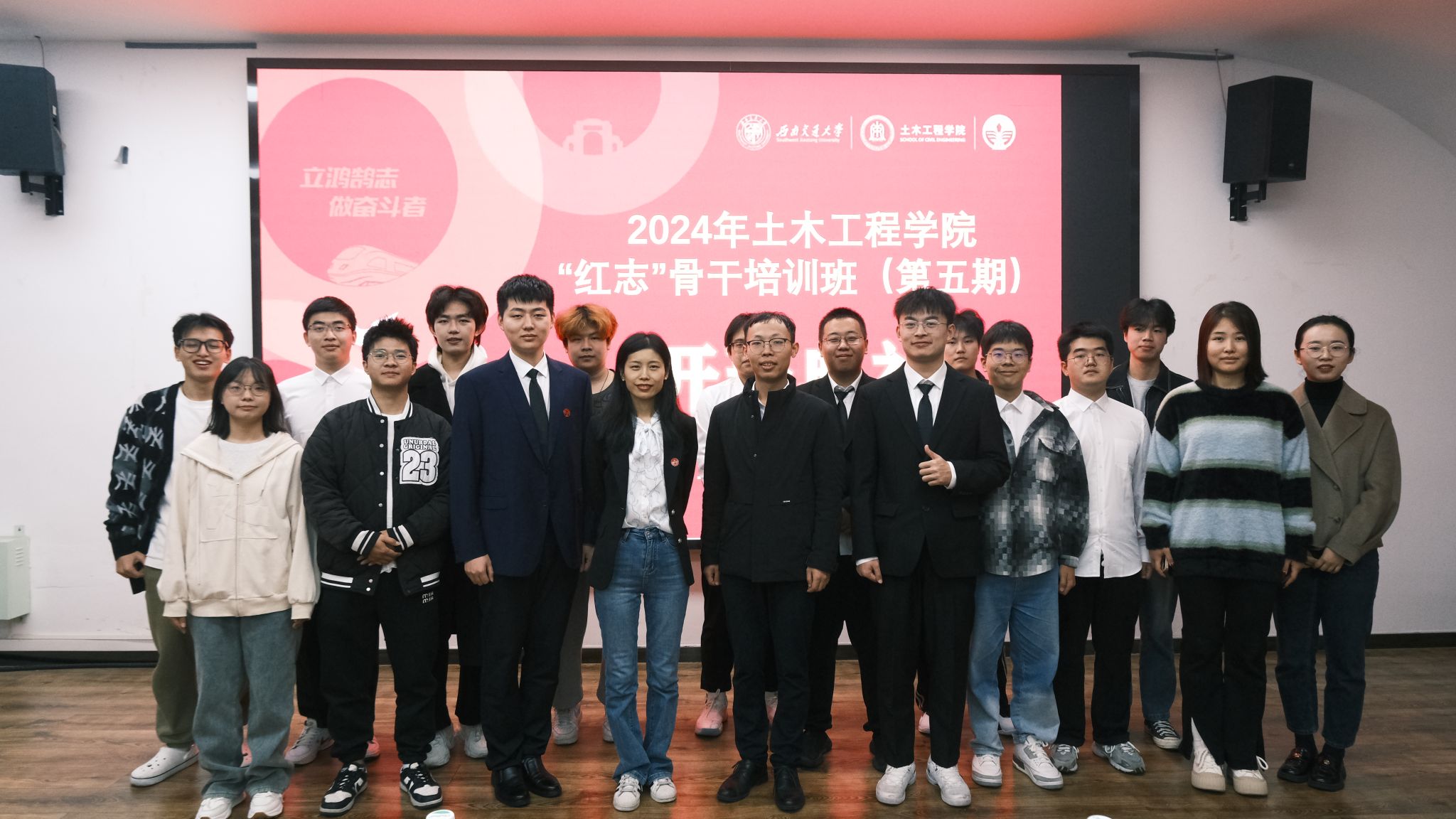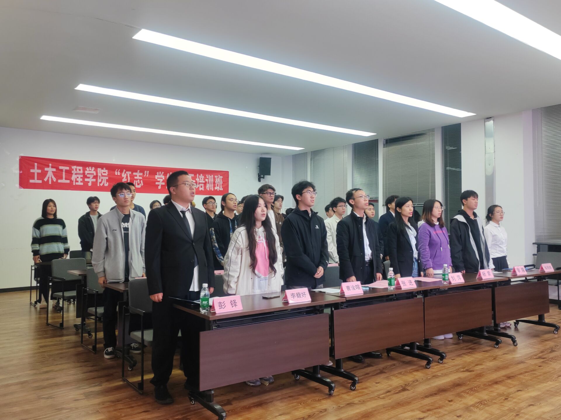 最后,在李陽和陈雨婷的带领下,“红志”班学员们庄严宣誓,“铭记兴我中华之责任,铭记土木百廿之历史;传承竢实扬华交大精神,发扬严谨治学土木传统……”,“红志”班学员的誓言经久不息,铿锵嘹亮。