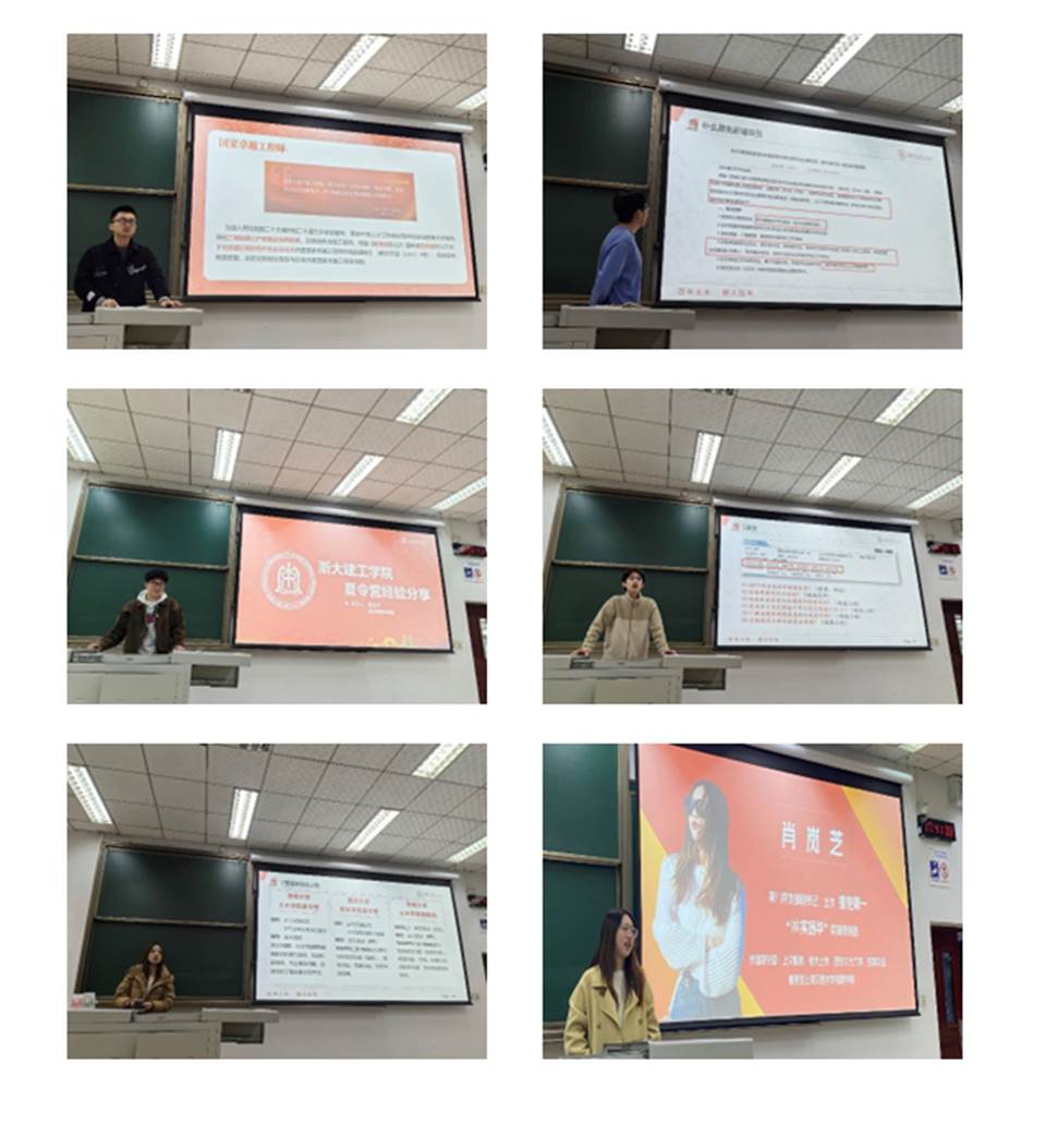 随后,梁涛同志和廖文杰同志对免研辅导员和工程硕博专项进行了全面介绍,加深了同学们对相关专项计划的认知与理解。土木学生第七党支部副书记吕一品、土木学生造价党支部副支书丁嘉璐等11位嘉宾依次登台,分享了他们在参加夏令营和预推免过程中的宝贵经验,其中涉及高校多达几十所,为同学们未来的择校提供了丰富且极具价值的参考。最后,土木学生第八党支部副书记、“竢实扬华”奖章获得者肖岚芝分享了其本科课程的高效学习方法与心得体会,针对不同年级同学的特点提出了切实可行的建议,鼓励大家坚定目标,砥砺前行。分享环节结束后,进入互动答疑环节,嘉宾们耐心且热情地解答了同学们在保研过程中的诸多困惑。