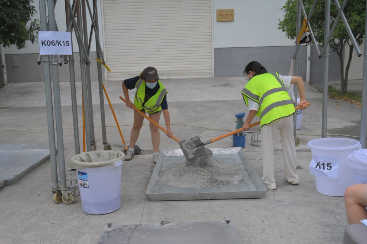 比赛共吸引18支队伍参赛。各队伍围绕赛题进行混凝土配合比设计,并进行现场施工,通过对扩展度、J环扩展度、T500时间等关键指标进行测试,全面展示其混凝土的性能。选手们在实操中表现出良好的专业素养与实验技能,体现了对混凝土材料的深入理解。