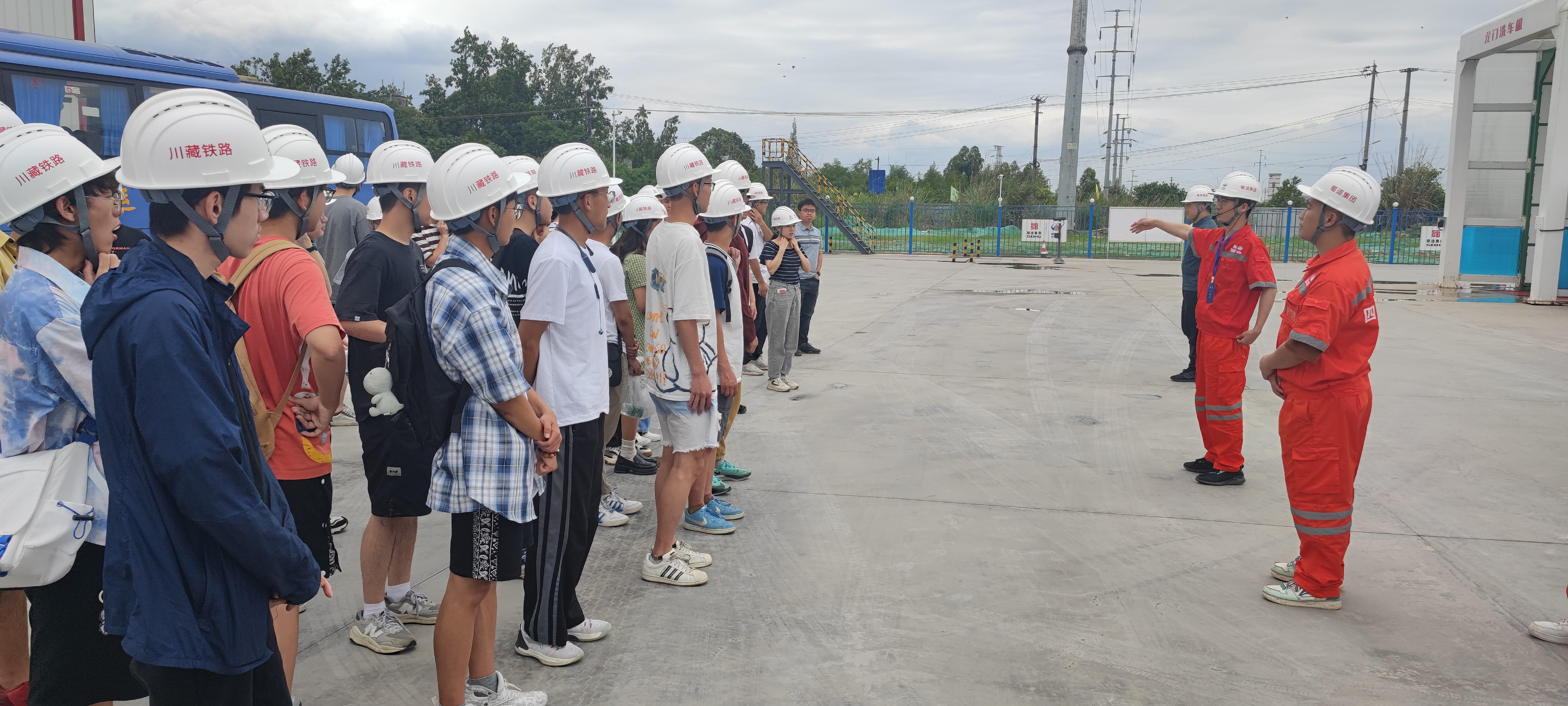 首先同学们坐车到达了川藏铁路引入成都枢纽工程指挥部,指挥部工作人员热情接待了同学们,并为同学们讲解了进入施工场地的相关注意事项并且演示和配发了安全帽。