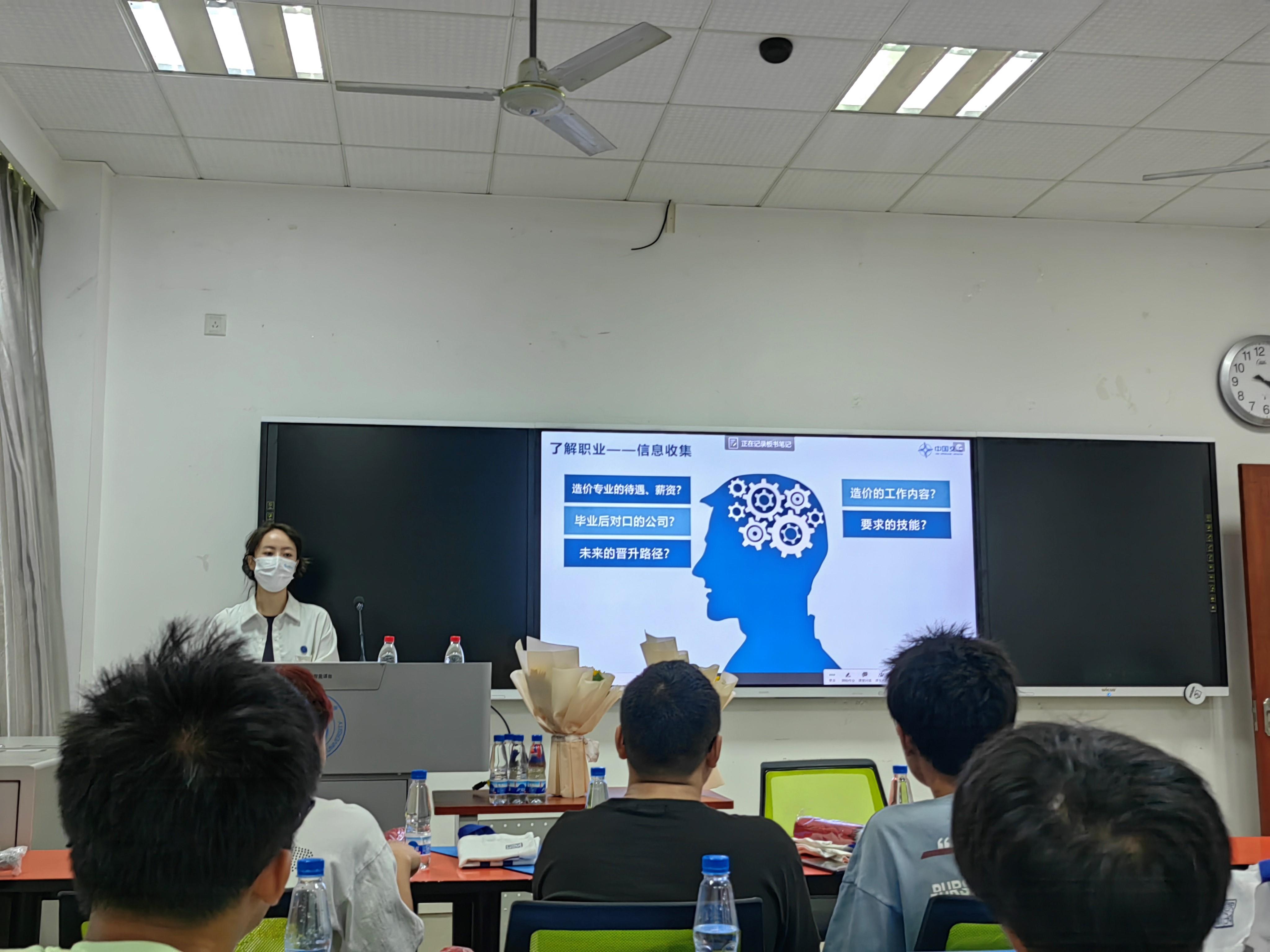 首先,王淑栏老师向同学们播放了北大招生的宣传片,激发了同学们追求卓越的梦想。接着,王老师向同学们介绍了三位企业生涯导师的基本情况,分别是蔡静茹、邹小宁和王淑栏。现在在中交四航局四公司从事造价相关的工作,有着丰富的实践经验和专业知识。