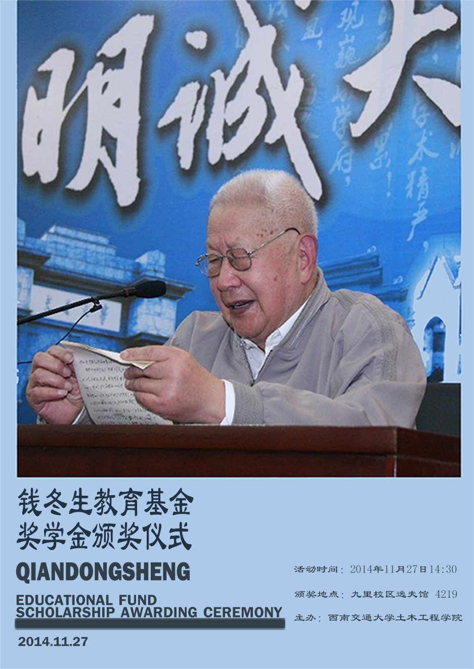 【研究生】钱冬生教育基金奖学金颁奖仪式的通知