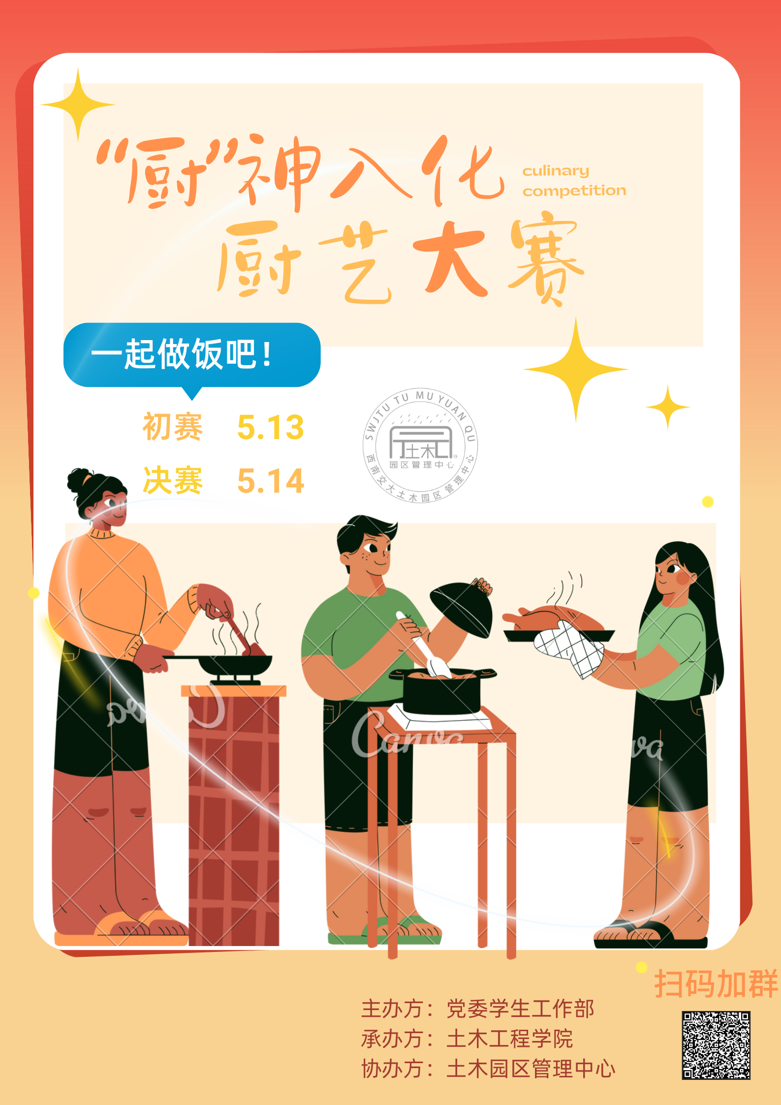 为培养同学们的饮食情趣,使健康饮食、特色饮食深入人心,吃出营养、吃出健康、吃出生活、吃出精彩,弘扬校园美食文化,拉近师生与食堂之间的距离,土木学院园区管理中心特此举办这次以“厨神入化厨艺大赛,展示劳动风采,共享美食盛宴!“为主题的比赛。