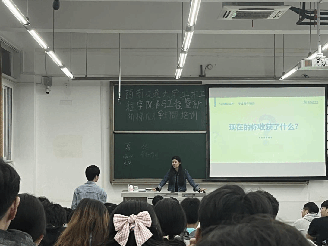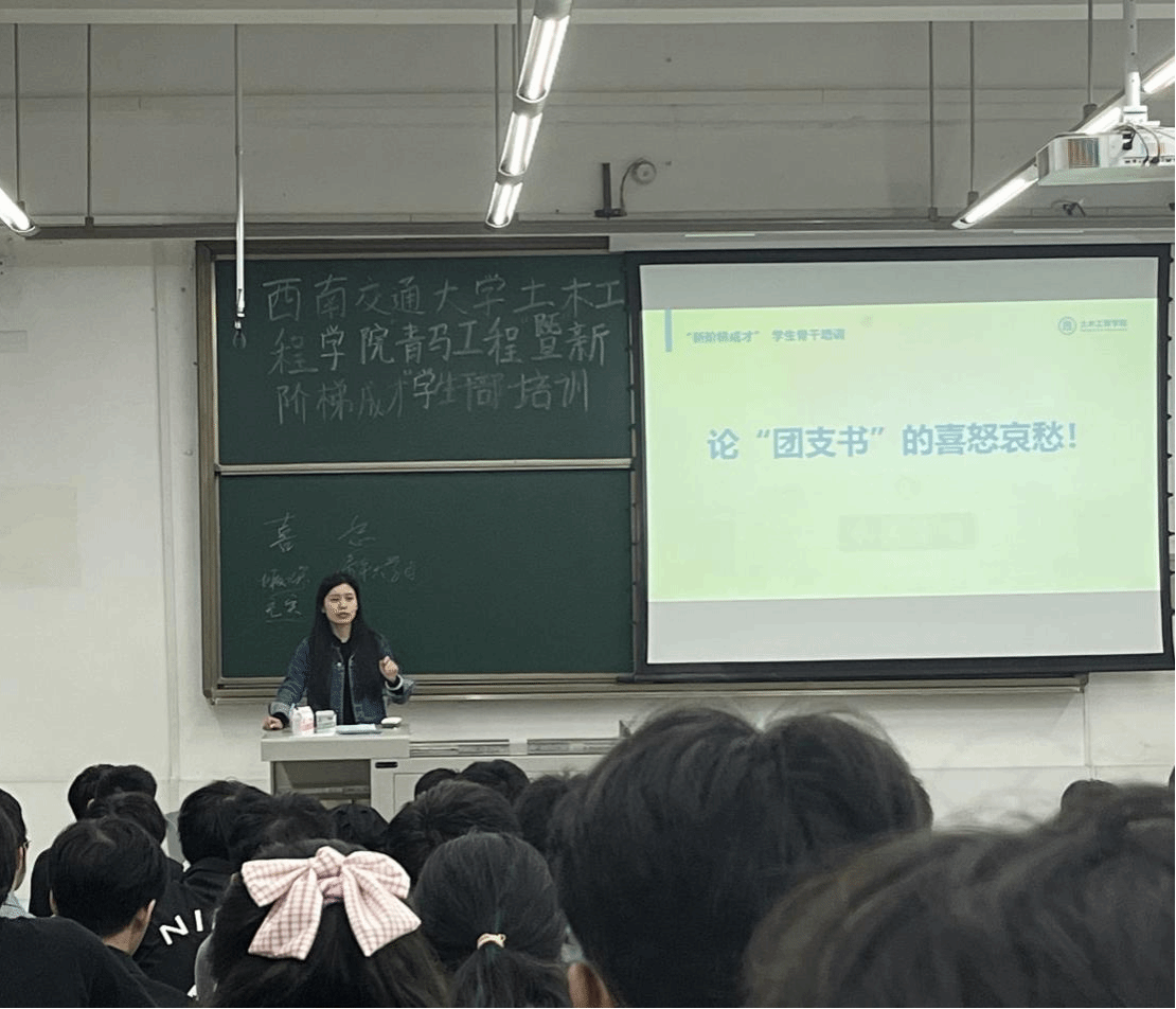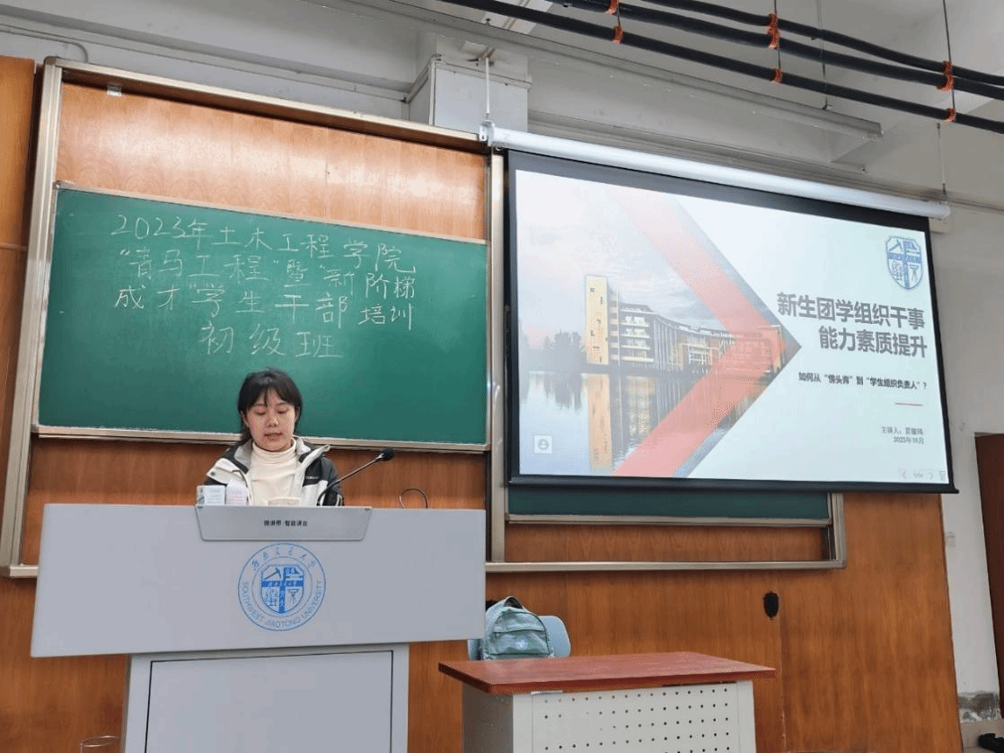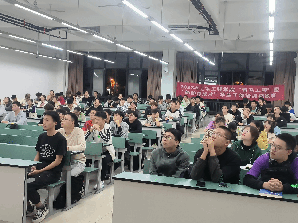 学院根据班团干部性质、工作内容及晋升阶段的实际需求,采取课堂教学及交流研讨相结合的形式,融知识性、参与性、体验性及互动性于一体,实行分职能、分岗位、分层次的培训模式。课程面向全体学员开展了“党的二十大精神专题学习、习近平新时代中国特色社会主义思想学习及爱国荣校专题学习”,主讲老师为土木学院2023级新生辅导员学院青年讲师团成员——薛人铭老师;面向土木学院2023级班团干部开展有关“新生班团干部理论素养和能力素质提升”的培训,主讲老师为土木学院2023级新生辅导员、学院青年讲师团成员——李江怀和谢宇清老师;面向2023级团学组织干事开展了“新生团学组织干事能力素质提升”的分层课程培训,主讲老师为诸侯快讯ok1133.com2023级新生辅导员、学院青年讲师团成员——贾璇琦老师;面向2023级团支书和团学组织负责人开展了“团的十九大精神团课”的培训,主讲老师为诸侯快讯ok1133.com团委书记、学院青年讲师团成员——刘萍老师。
