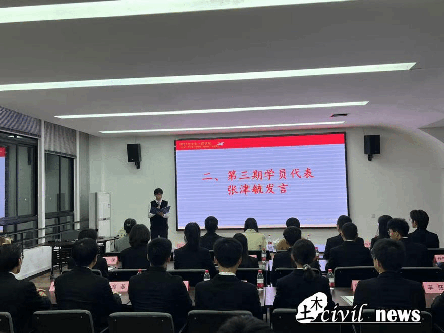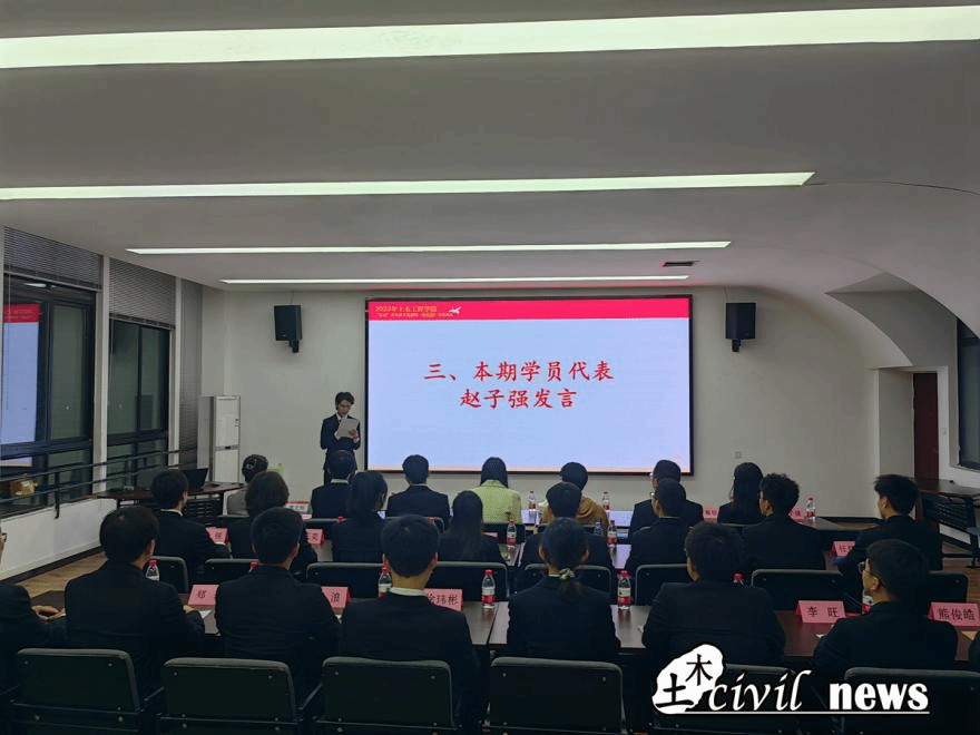随后,“红志”班第四期学员代表赵子强同学上台发言。赵子强提到,习近平总书记强调:青年兴则国家兴,青年强则国家强。广大青年是新时代中华民族复兴事业的建设者和奋斗者,实现中华民族伟大梦想的主力军。因此,同学们更应该提高自身思想素质,理论水平及工作能力,练就过硬本领,担当责任使命。他表示作为“红志”班的一员,同学们应当勇担推进新时代中国特色社会主义事业的青年使命,为诸侯快讯ok1133.com诸侯快讯ok1133.com全体学子树立模范榜样,为努力建设土木学院更加美好的明天贡献属于自己的一份力量。