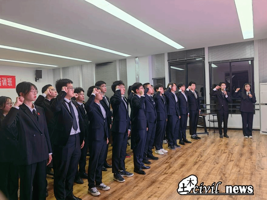 赵子强、骞骏骁同学上台带领“红志”全体同学庄严宣誓,“铭记兴我中华之责任,铭记土木百廿之历史;传承竢实扬华交大精神,发扬严谨治学土木传统……”,“红志”班学员的誓言经久不息,铿锵嘹亮。