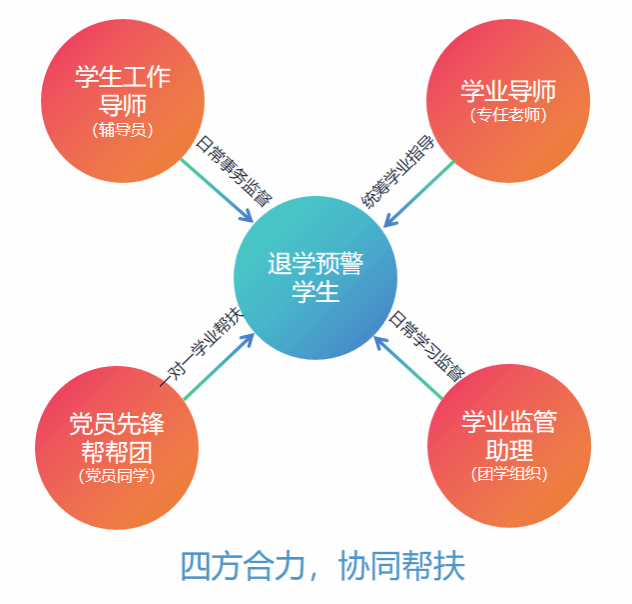 3、学工导师帮扶制度:学工导师应与所属年级每位预警学生进行一次深度谈话,记录学生身心及学业情况,定期关注学生动态。