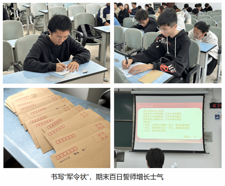 活动最后,老师们向分发信笺纸,同学们在纸上写下自己的目标并装入信封,以此作为“军令状”,让同学们更加明确了自己的目标,鼓舞同学们的斗志。此外,老师还带领同学们发起期末百日誓师,鼓励同学们立志突破自我,成就梦想。本届红土加油班开班仪式在同学们庄严的宣誓声中画上圆满的句号。