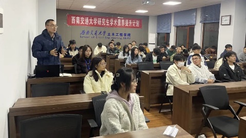 为助力学生快速进入研究生学习生活状态,加强学生对于学校、学院、学科的归属感,认同感。2023年10月12日学院为研究生新生开展理想信念教育,石莹老师给学生们介绍了学校和学院的优良传统、历史文化及土木工程学科的成就,增强学生对学院和专业的认知度和认可度。并在讲座中提到中国式现代化是实现中华民族伟大复兴的根本之路,强调当代青年应秉承交大精神,勇担科技报国、交通强国的使命。