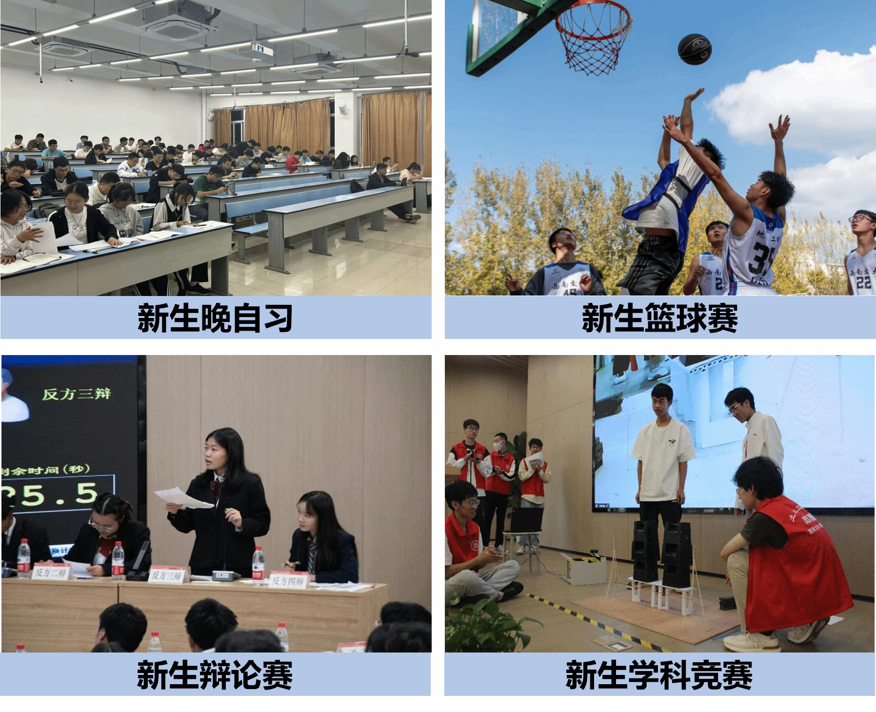 双严传统,学院制定了《本科2023级晚自习管理办法》,组建了一支学风督导队,帮助新生养成主动学习、自我学习的习惯;以赛促学,学院开设新生入学教育科创竞赛专题,组织开展了一场新生科创竞赛,帮助新生了解竞赛、参与竞赛、欣喜竞赛;动静相济,学院组织开展了新生篮球赛、新生辩论赛、新生游园活动,让新生走出宿舍,深入到运动场所中去,参与到课外活动中来,在提成综合素质上发力,成一番“红业”。