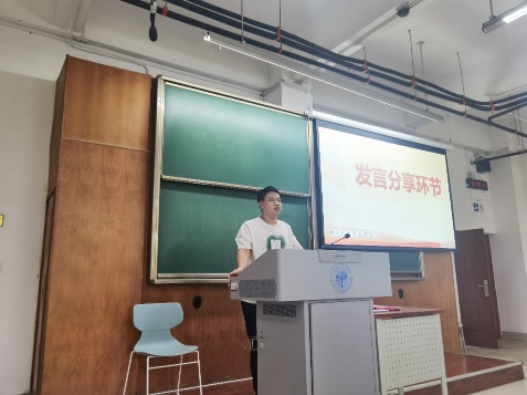 活动伊始,支部党员宋乾瑞同志以“学思想”为导向,多维度解读了党的二十大精神的内涵、现实意义以及对未来的作用。党的二十大报告以习近平新时代中国特色社会主义思想为指导,着眼新征程上推进理论创新的需要,全面总结新时代十年来坚持和发展马克思主义中国化时代化的历史经验。宋乾瑞同志讲到,深刻理解党的二十大精神、深入领会“两个结合”“六个必须坚持”,既需要我们着眼党的十八大以来国内外形势变化和实践需要的系统关联,全面理解蕴含其中的理论意蕴和实践价值,也要求我们着眼马克思主义理论发展、理论创新需要趋向等视野,融通把握内嵌其中的理念特质和思想智慧。同时宋乾瑞同志倡导,支部党员应坚持以爱国主义精神为指导,培养爱国之情、砥砺强国之志、实践报国之行。