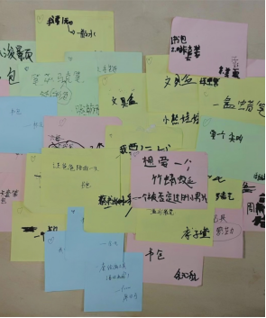 在活动筹备阶段,志愿者们积极与威远县食丰村的工作人员取得联系,双方沟通协商后,确定了本次活动的主题,为小朋友们实现一次愿望!为确保孩子们的小小愿望能及时实现,6月1日当天,志愿者分为两拨开展本次活动。其中一批前往内江市威远县严陵镇食丰村,与社区相关负责人合作开展社区庆六一特别活动,引导小朋友们在便利贴上写下自己的心愿,同时由志愿者与当地的社区管理协作审核心愿便签,确保每一个小小心愿都能被实现。另一批志愿者则于校内进行活动现场的布置与接应,及时将社区留守儿童的心愿抄写在新的便签上,供前来参与的同学们揭榜。揭下便签纸的同学将为小朋友实现便签纸上的愿望,志愿者们详细记录了每一个前来参与同学的信息与揭下的愿望便签的具体内容,方便后期礼物回收工作的开展,确保同学们的爱心都能被传递到小朋友的手中。