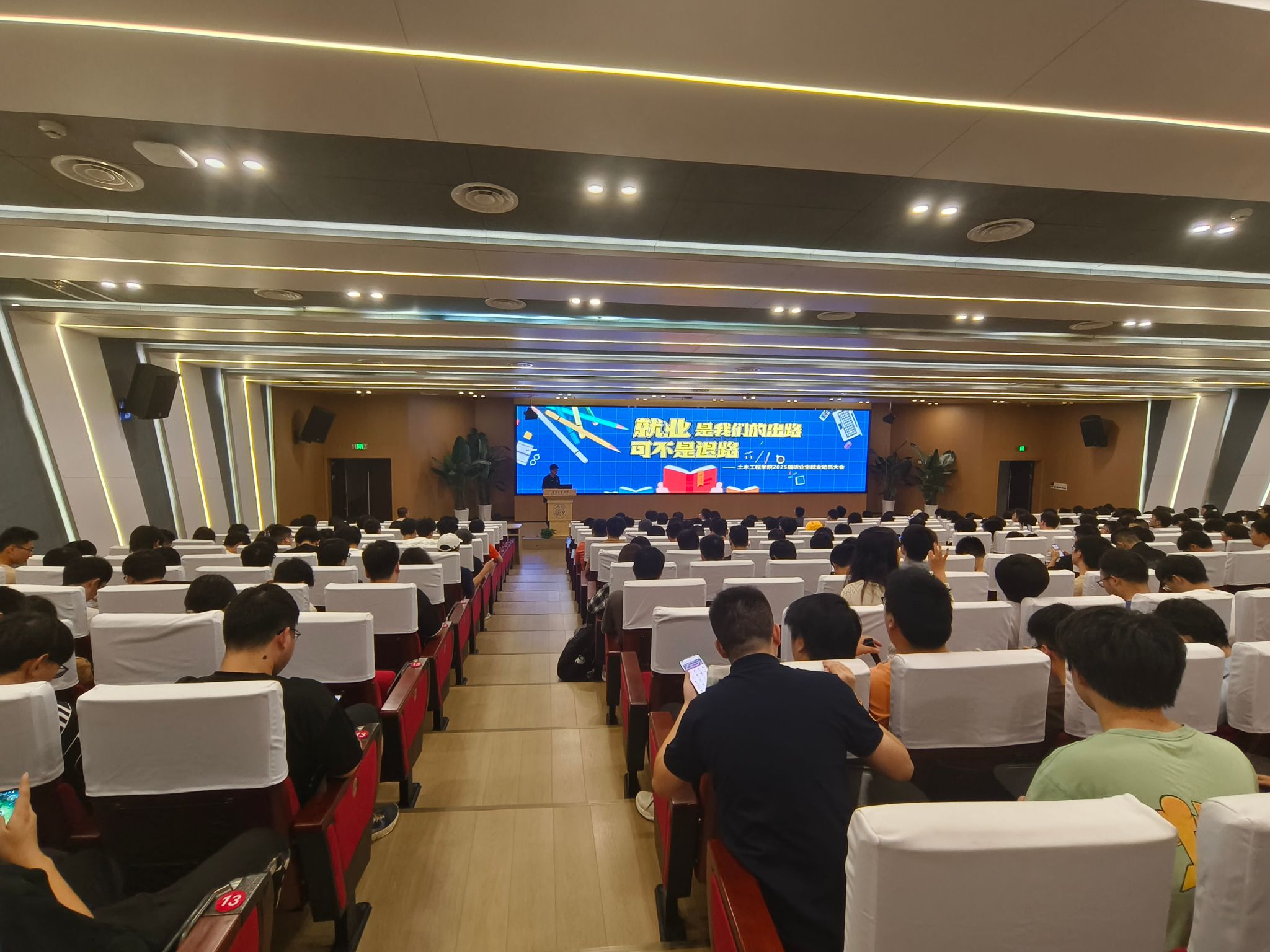 就业是民生之本,是社会稳定之基,更是经济发展的晴雨表。在动员大会开始之际,李江怀老师就向大家分析了当前的就业趋势,在桥梁,地下,隧道,土木+人工智能等方面呈现多元化毕业去向。