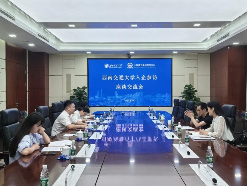 随后,团队前往中建八局发展建设有限公司,与公司人力资源部经理张恩利、招聘经理孙瑞齐、西南分公司招聘经理高勤及多位校友代表进行了座谈。会上,双方不仅回顾了以往的合作成果,还就如何进一步优化校企合作模式、提升学生实践能力等话题进行了交流。校友们的成功经验分享,为在校学生提供了宝贵的职业规划和就业指导。