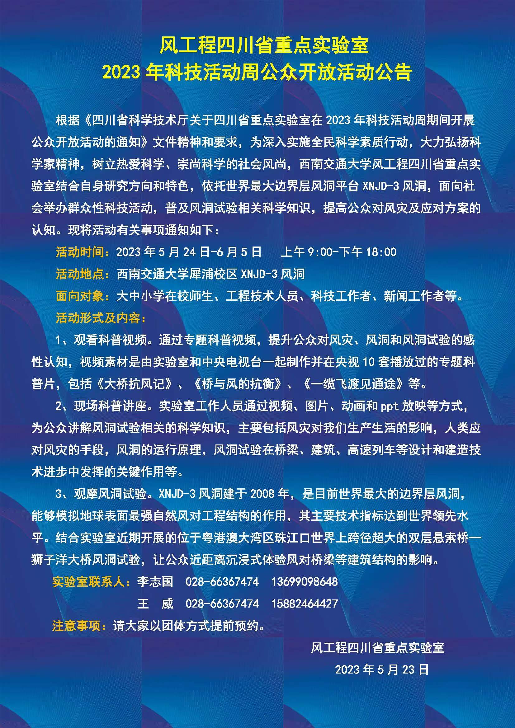 风工程四川省重点实验室2023年科技活动周公众开放活动公告