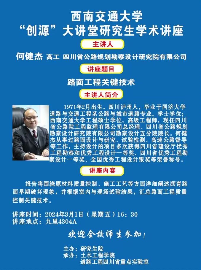 “创源”大讲堂研究生学术讲座-路面工程关键技术