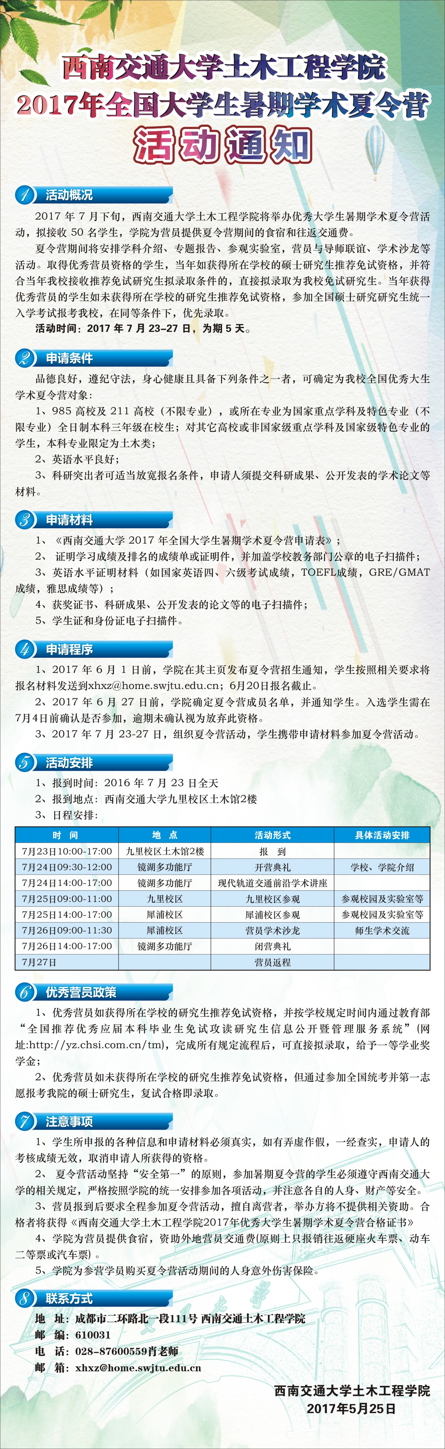 诸侯快讯ok1133.com土木学院2017全国大学生暑期学术夏令营活动通知