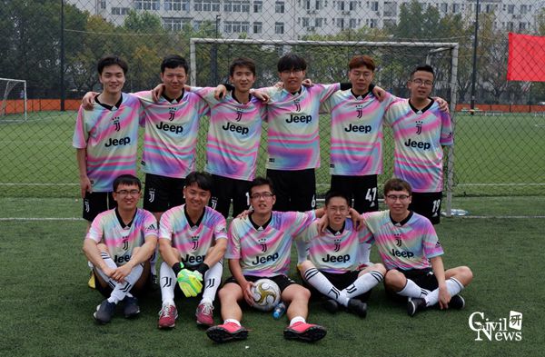 另外一场小组赛在岩土队和隧道队间展开,一声哨响,隧道队开局便初露锋芒。进攻十分猛烈,比赛刚进行至第10分钟,岩土队一名队员在一次拼抢中脚踝受伤,被换下场。但岩土队一直顽强拼搏,4号队员鱼跃冲顶,球进了!岩土队1:0领先,上半场结束。下半场一开始,隧道队开始绝地反击,岩土队队员全线压上,却让后防岌岌可危,隧道队90号队员胡萧越在右翼一脚似传似射的打门成功破网,球进了,比分改写为1:1平。随后双方战局焦灼,互相死守,1:1的比分也一直保持到下半场结束。
