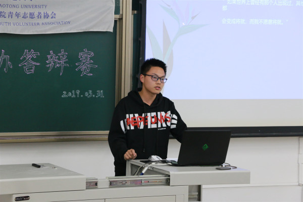 比赛开始,答辩者们逐个上台,本次答辩的主要形式大都是PPT展示,或者短视频播放,每一位参赛者的答辩时间控制在6分钟左右,大家都简明扼要的表达了自己对各自所选辩题的理解。无论是对倔强式单身的精彩解读,还有向大家介绍的实用APP——南瓜电影,soul交友,抑或是对青春,高质量社交,低质量独处的不同理解,答辩者们的各抒己见不断博得现场观众的热烈掌声。各位参赛者还对评委老师所提出的问题做出了一系列精彩的回答。