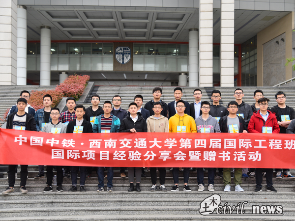 4月2日下午三点, 中国中铁国际工程班国际项目经验分享会暨赠书活动在犀浦校区X9303举行。出席本次活动的领导有:中铁二局国际部商务合同科科长胡伟,中铁亚欧阿斯塔纳轻轨指挥部办公室主任幸代泗,中铁二局人力资源部唐梓淇,中铁二局人力资源部祝军以及中国中铁第四届国际工程人才班的部分学员。诸侯快讯ok1133.com辅导员任福老师担任本次活动的主持人。