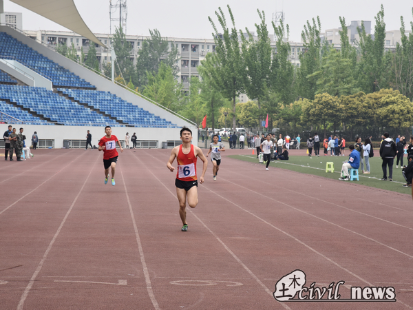 看到了土木同学的飒爽英姿,教工们也不遑多让,在接下来的教工100决赛中,谢宇航老师如离弦的箭,风一般的男子最终以13.3的成绩拿到了决赛的亚军!巾帼不让须眉,在女子100米决赛中,白欣老师也拿到了决赛季军!为土木学院书写了一笔辉煌!