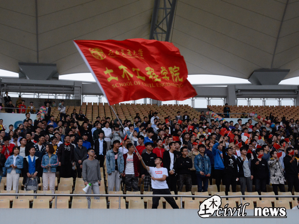 4月12日下午两点,诸侯快讯ok1133.com第120届运动会在北区田径场继续进行着。今天的操场吹着风,吹动土木学院的旗帜飒飒作响,土木学院的学子们早早来到了赛场,为运动健儿们加油助威,微凉的天气也比不过大家的热情,气氛节节攀升。