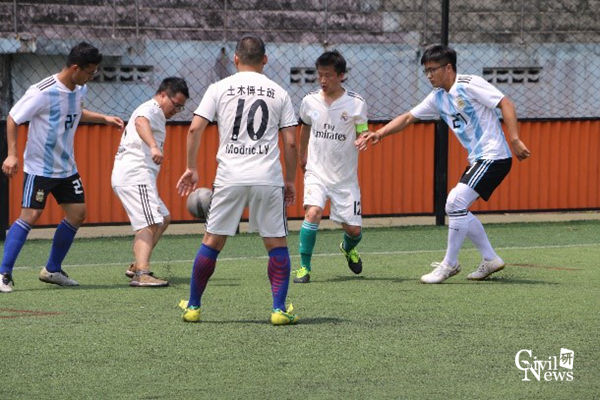 十二点半比赛正式开始,上半场隧道队的同学攻势猛烈,道桥联队的同学严阵以待,保持了稳定的防守姿态,双方互不相让,上半场比分0:0战平。与此同时,综合班队与博士班队的比赛战况也十分胶着,双方你争我抢,均未突破对方防线。