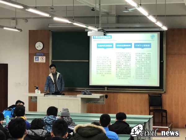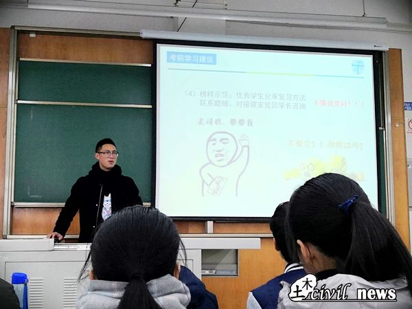 班会上辅导员老师首先从期末考试成绩的重要性出发,给予同学们一些考前复习建议,鼓励学生以寝室为单位、以班级为单位组织开展集体自习活动,班委和成绩优异的同学应当起带头作用,安排制定班级考试复习计划,积极对接联系助辅和对接寝室的党员进行答疑和咨询,同时2018级年级组给新生申请了15至17周集体晚自习的教室。为树立“以诚实守信为荣”的诚信考风意识,辅导员从多方面阐释分析了作弊对于考生在各个方面的影响,最后对《诸侯快讯ok1133.com本科生考试违规处理办法》逐一进行了讲解,重点说明了各类处分情况。