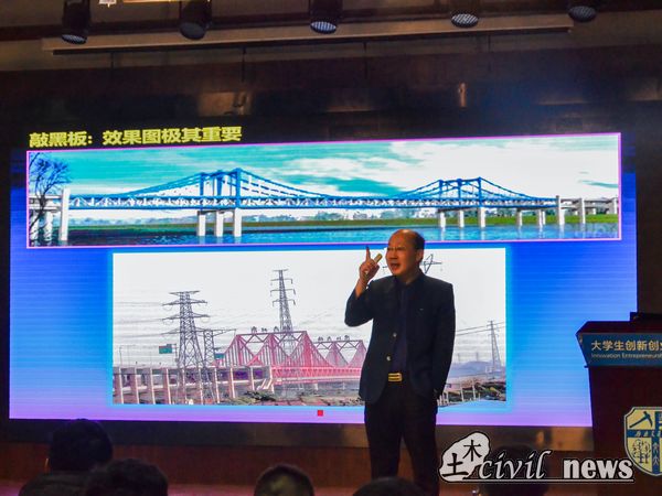 郑教授首先为大家解读了由中国公路学会中交公路规划设计院有限公司下发的《关于开展“中交公规院杯”2019世界大学生桥梁设计大赛的通知》文件,和分析了在桥梁设计的哪些方面做文章最容易获奖,并鼓励大家设计以“大”为主的桥。他表示这是一个考验能力和眼界的竞赛,敢于创新是关键,越是大家想不到的桥越容易获奖。随后郑教授着重强调了效果图的重要性,他指出,效果图的好坏占到了成败因素的80%,他还明确表示在今天宣讲中他会三次提到要做好效果图。