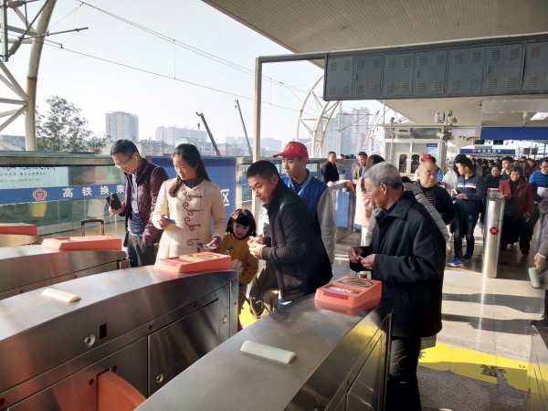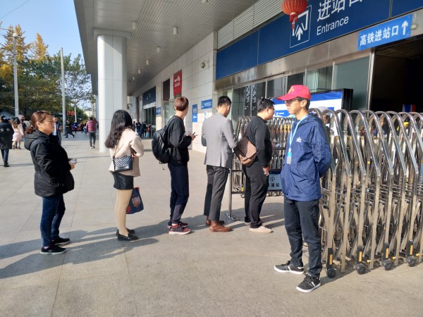 爬上一百多阶楼梯,来到楼上的检票口。欢迎完毕,高铁叔叔立即开始“敲黑板、划重点”。“注意旅客经常不知道先是检高铁票,再检地铁票,注意有的旅客会把票插反,注意有的旅客会站红线内插卡……”。开始以为是危言耸听,开始了才发现真就和叔叔说的一样,大多旅客都不知道是先高铁票,后地铁票,小红帽直接顾不得身份,学着叔叔喊起来“旅客们注意了,先是检高铁票,后是检地铁票……”。