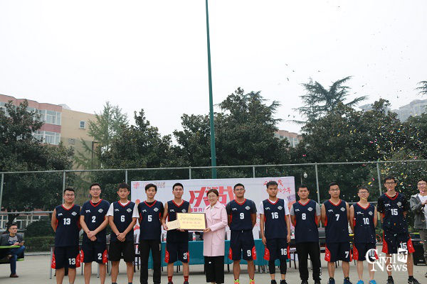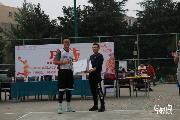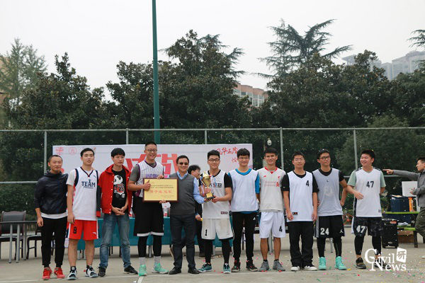 在闭幕式上,老师们分别向冠、亚、季军和决赛MVP物理班队长颁发奖杯和奖品,同时向他们表示祝贺并赞扬了他们在赛场上的体育精神。最后全体运动员、老师在篮球场中央合影留念。