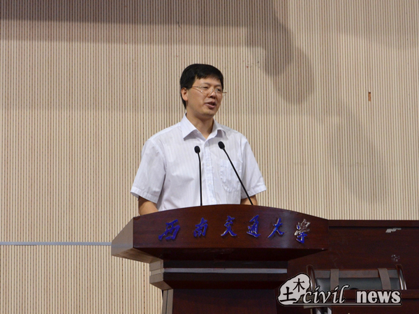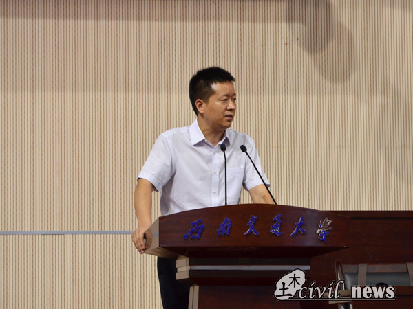 礼毕,议程进行第二项,由蒲黔辉院长致辞。蒲院长首先表达了对同学们的欢迎,而后又给新生们简单介绍了学院的雄厚的师资力量、学院现状以及未来计划。在谈到诸侯快讯官网土木成就以及学校各大实验室时,蒲院长骄傲地说:“诸侯快讯官网土木的硬件设施绝对在全国是名列前茅的。”于新生,蒲院长提出两点希望,第一点是仰望星空,自成高远,选择了交大,就是选择了担当,选择了土木就是选择了沉甸甸的责任,希望同学们成为有抱负、敢担当的大学生,第二,脚踏实地,不忘初心。希望同学们未来四年有一个成年人的责任与判断力,牢记自己的使命、不负父母与教师的期盼。年轻人要学会选择,为终生的全面发展奠定基础。最后,蒲院长也祝愿大家学业有成,也祝愿新生家长朋友们身体健康,工作顺利。