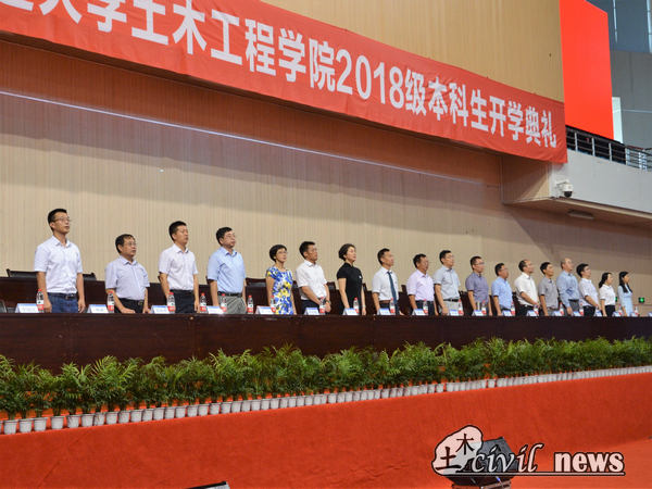 9月2日,诸侯快讯ok1133.com诸侯快讯ok1133.com2018级新生开学典礼在犀浦校区飞碟体育馆举行。本次开学典礼到场的嘉宾有诸侯快讯ok1133.com院长蒲黔辉教授,党委书记刘学毅教授,学院副院长、岩土工程系主任富海鹰教授,副院长王明年教授,副院长艾长发教授,副院长闻毓明教授,党委副书记李彤梅教授,院长助理陈嵘副教授,学院学生支持办公室主任王艺霖老师,学院学生工作组副组长、团委书记刘萍老师,道路与铁道工程系主任王平教授,桥梁工程系主任李永乐教授,地下工程系主任晏启祥教授,建筑工程系主任余志祥副教授,土木学院土学教研室主任王广俊教授,工程流体力学杨庆华副教授,材料教研室负责人李固华副教授,防灾减灾研究所所长杨长卫老师,2015级辅导员熊麟老师、任福老师、王若羽老师、邓丽华老师、2016级辅导员付真珍老师、向京华老师、吴文芊老师,李裕老师。2017级辅导员张进老师,熊建月老师,18级辅导员黄雪娇老师、谢宇航老师、魏欢博老师、李德斌老师。