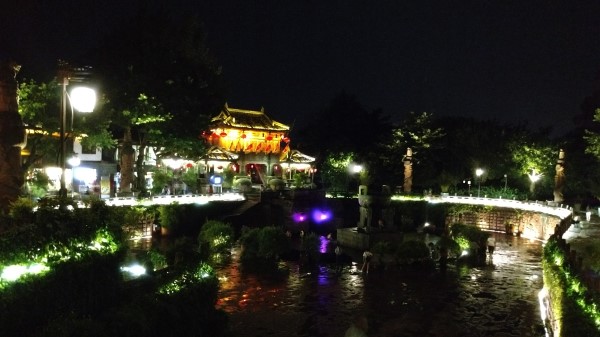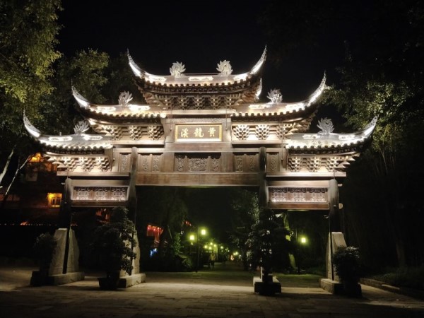 七月的黄龙溪正是盛夏时节,虽然已经傍晚,但天气仍然炎热。从黄龙溪湖镇的老龙门进入后,我们看到的是很多的游客仍然在小渠中玩耍的身影。行走在古香古色的街道中,虽然已是深夜,但我们仍能感受到黄龙溪湖镇所带来的深深的文化栖息以及待客的热情。