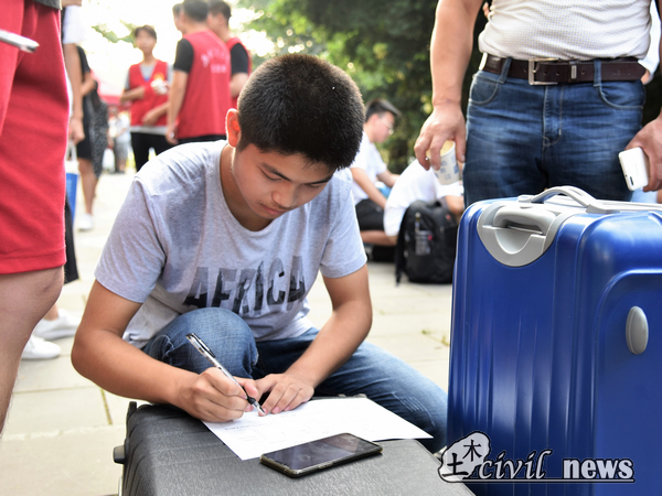 天佑斋17号楼是男生居住的地方,与其他新生不同,默默打扫着地面的刘同学并没有父母的陪伴,他一个人拖着行李箱,独立完成了报道手续。记者了解到,他是从湖南一个人乘火车来学校的。“以前上学我是自己一个人去,这次我也可以一个人来大学。再说,其实我并不是一个人,我有好多湖南老乡学长学姐的帮忙,虽然离家很远,都是我却依然能感觉到家的温暖。”谈到自己的专业,他说,父亲和哥哥都从事土木工程这一方向,于是他从小就立志成为一名土木人,能在诸侯快讯ok1133.com土木专业就读,他感到很荣幸,距离自己的梦想又进了一大步。