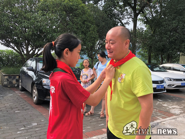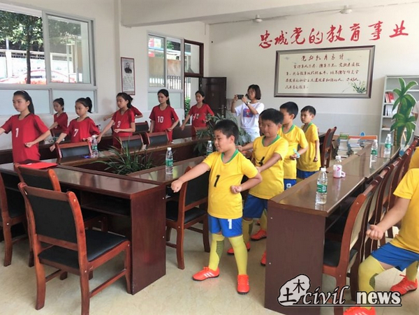 26日清晨,顺龙小学的同学们如期而至,会议室里的氛围渐渐活泼起来,志愿者为小朋友们穿上了为他们定制的足球服和足球鞋,并戴上红领巾。而小朋友们又为到场的老师及志愿者们戴上了鲜艳的红领巾,用这种特别的方式表达对大家的欢迎和感谢。